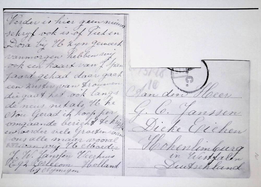 Brief in enveloppe. 12 juni 1944. Aan den heer G.C. ...