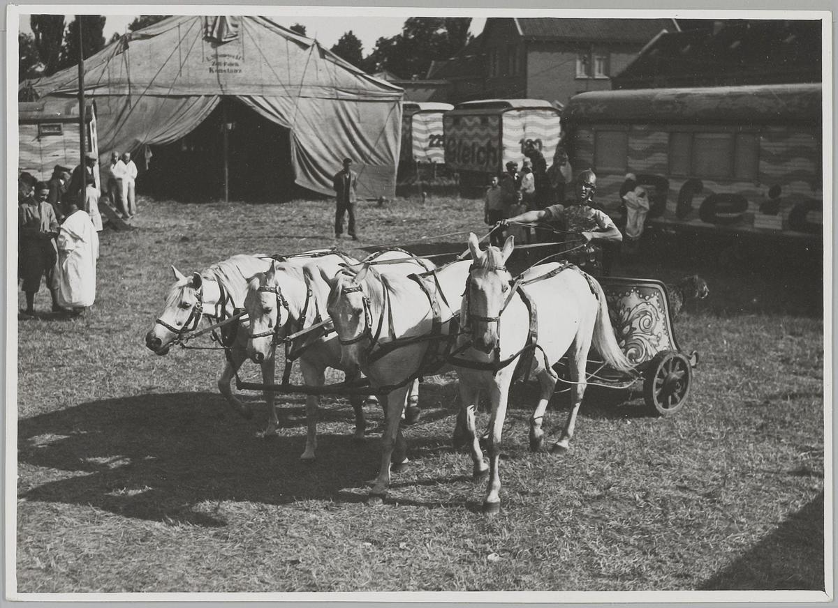 Circus Gleich. Z.g. Quadriga in de wagen Bubi Wilke ...
