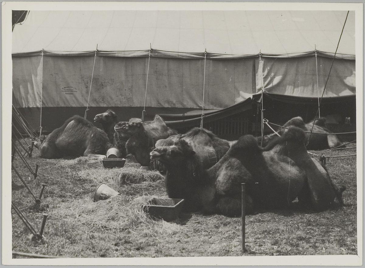Circus Gleich. De kamelen genieten van hun rust. Arn...