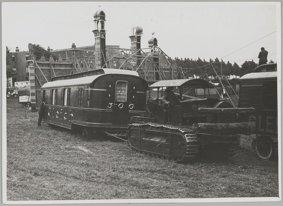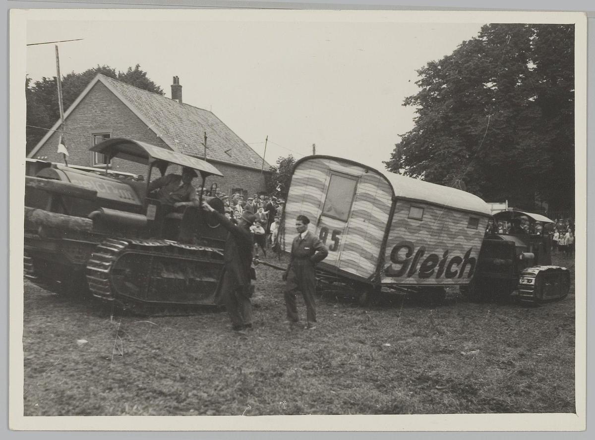 Circus Gleich. Een der rupstrekkers in actie. Arnhem...