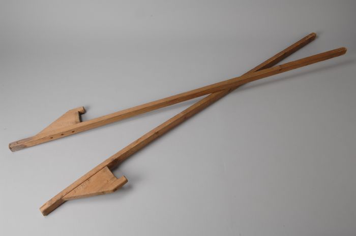 Houten stelten, met in potlood opschrift "FOKJE"