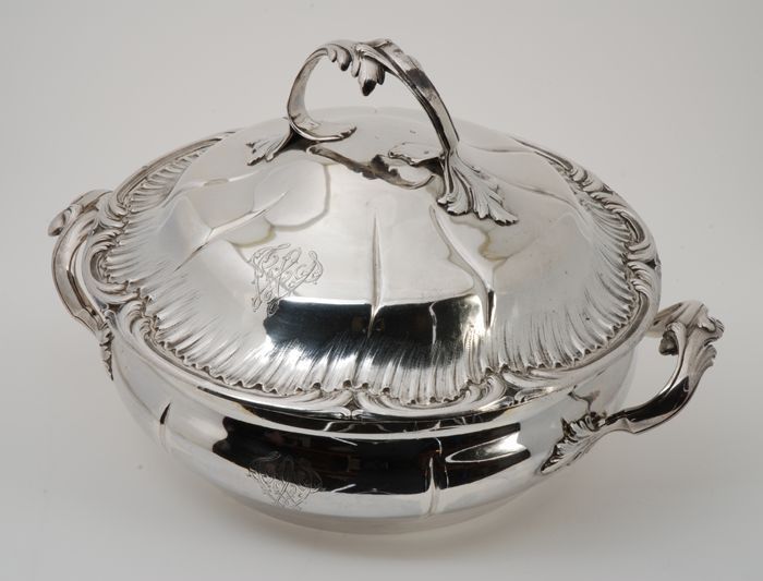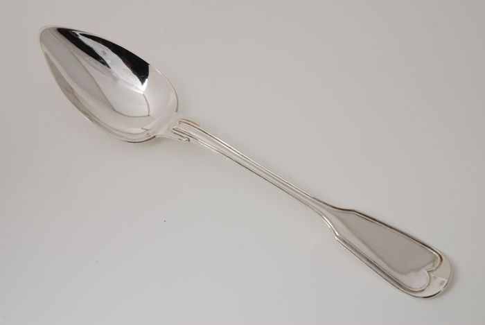 Zilveren couvert, 12 grote zilveren lepels, gegravee...