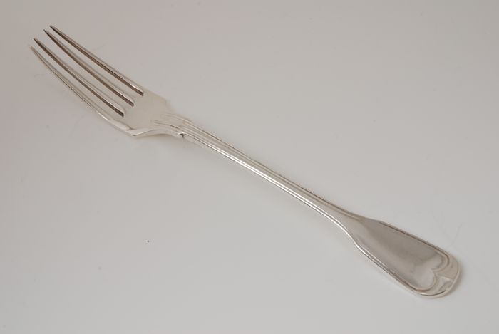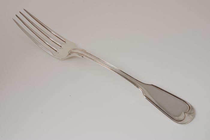Zilveren couvert, 12 zilveren vorken, gegraveerd "vW"