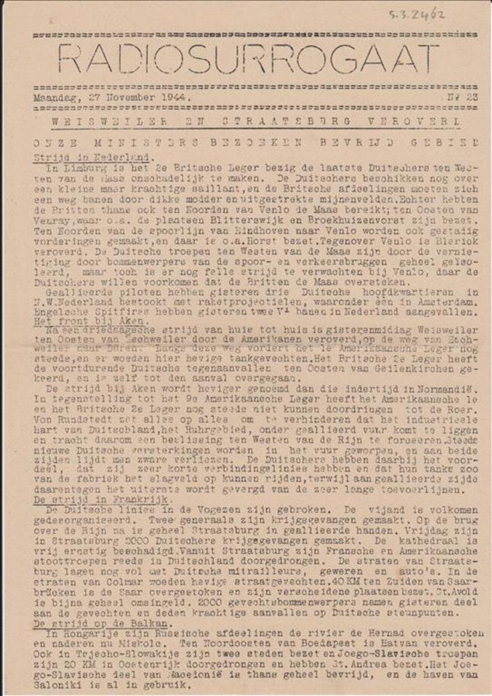 Radio Surrogaat, Maandag 27 November 1944, No 23.