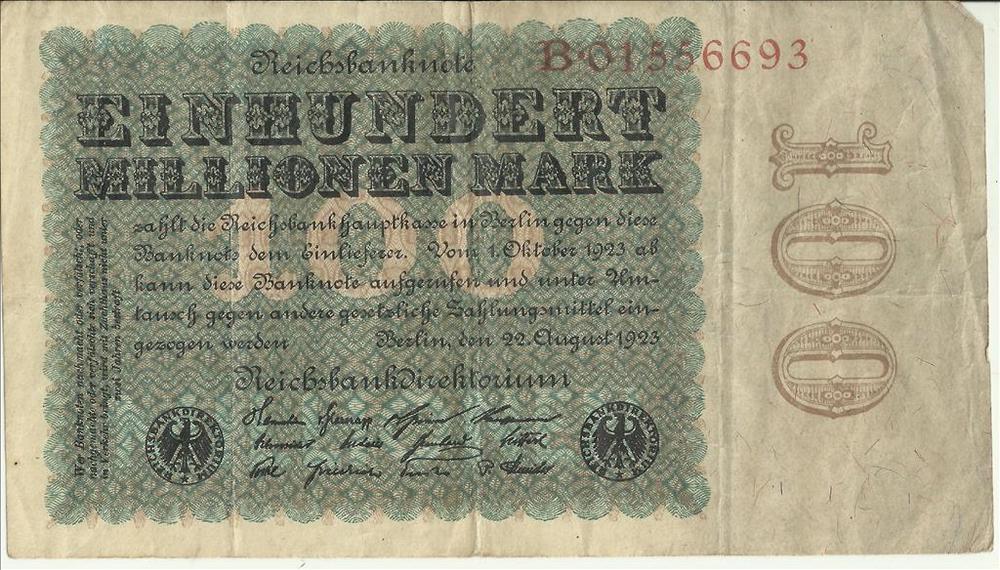 Bankbiljet, Duits, Reichsbanknote-100 Million Mark ,...
