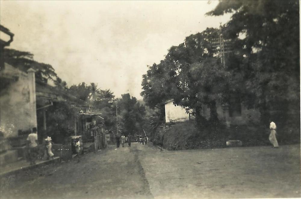 Nederlands Indië; huis, straat, boom, mens