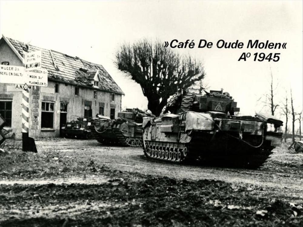 twee Churchill tanks bij "De Oude Molen" in Groesbeek
