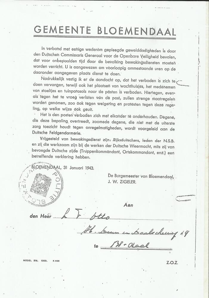 Gemeente Bloemendaal, de burgemeester J.W. Zigeler.