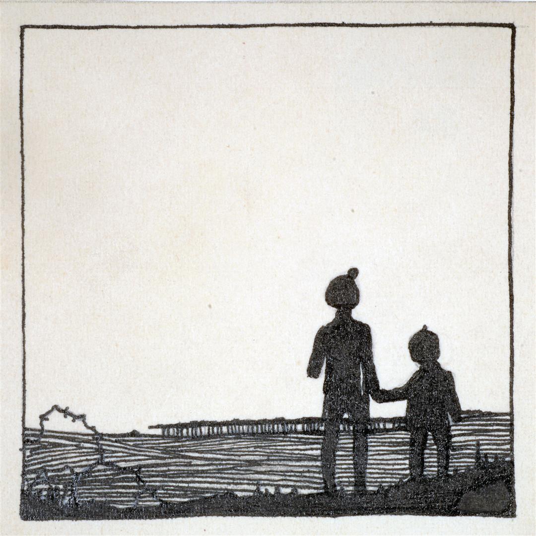 Zwart-wit foto van een tekening van de oude molen va...