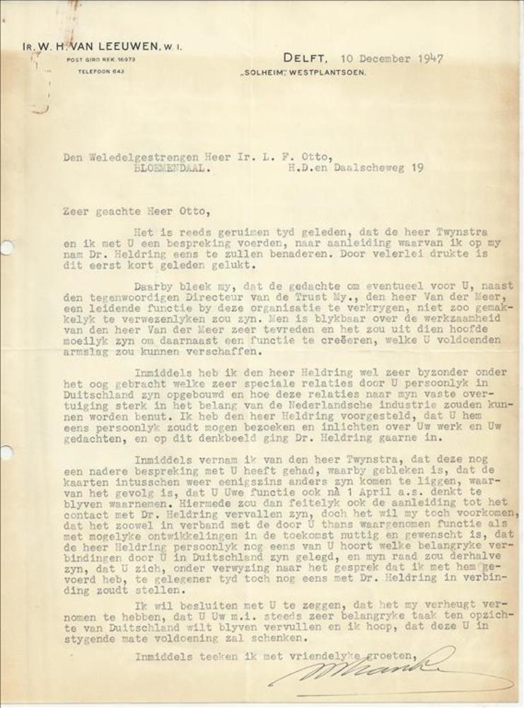 brief aan dhr Otto van Ir. W.H. Van Leeuwen - 10 dec...