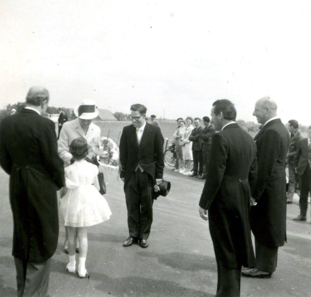 Zwart-wit foto van het verwelkomen van burgemeester ...