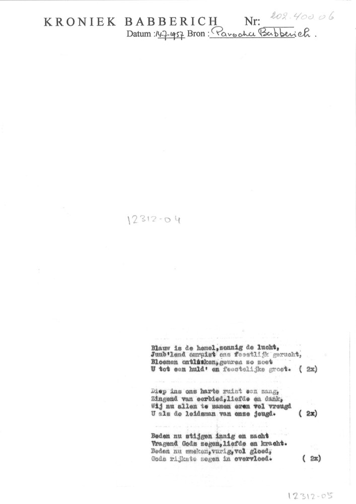 Lied gezongen vanwege het zilveren priesterfeest van...