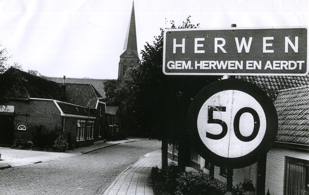 Zwart-wit foto van de Keurbeek in Herwen ca. 1960-1970