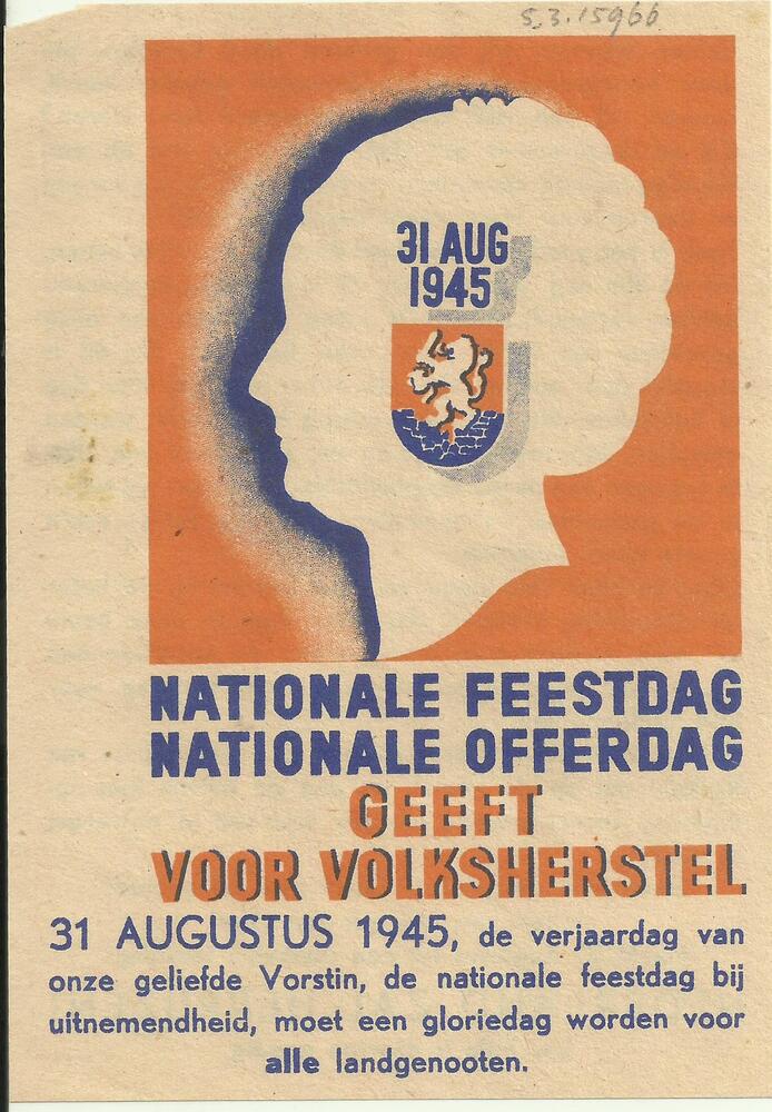 31 aug 1945. Nationale feestdag, nationale offerdag....