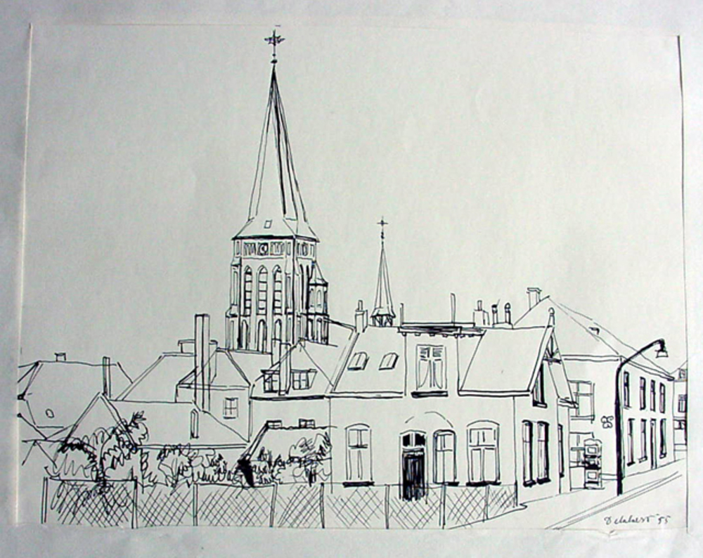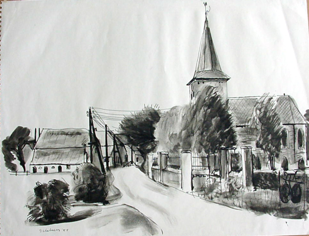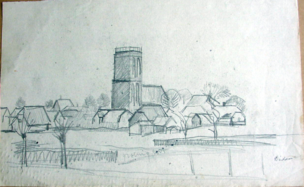 Tekening op papier met Oost-Indische inkt van Lathum...