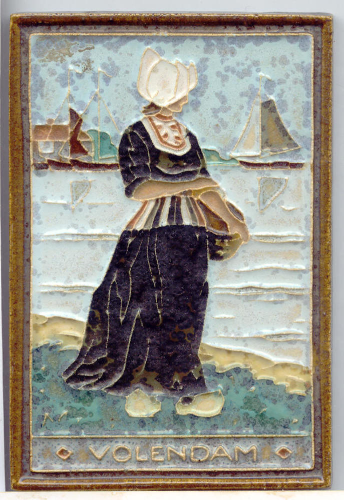 tegelplaat van keramiek in opglazuur, voorstellende:...