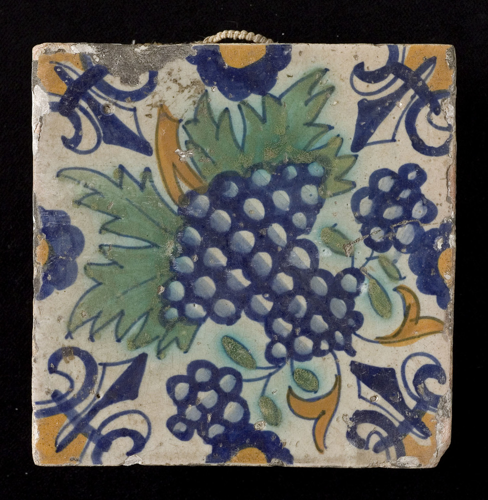 Tegel van keramiek met tinglazuur, voorstellende: or...
