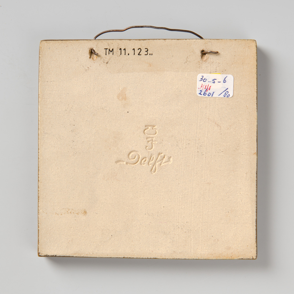 Tegel van keramiek met tinglazuur, voorstellende: wa...