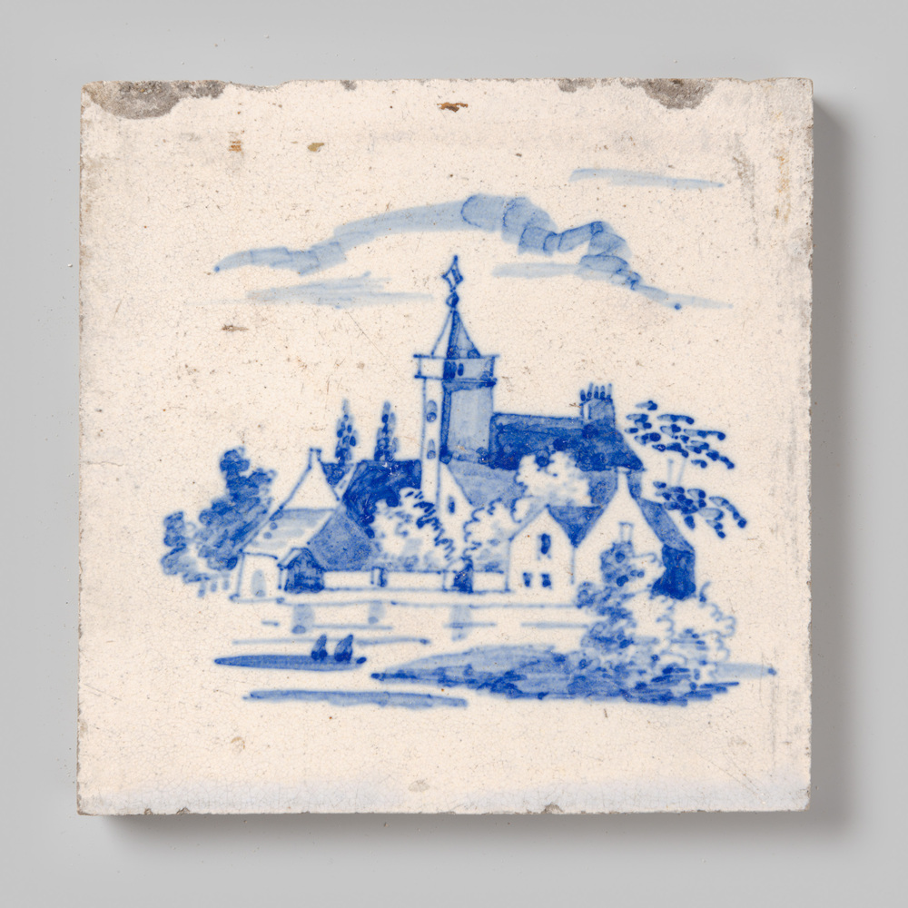 tegel van aardewerk met tinglazuur, voorstellende: s...