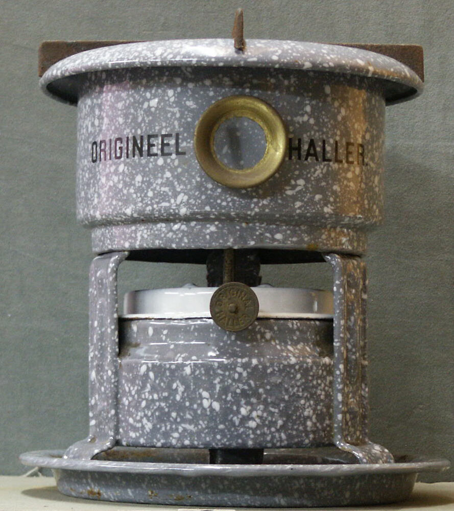 petroleumstel, merk Haller, 1 pits, van grijs gewolk...