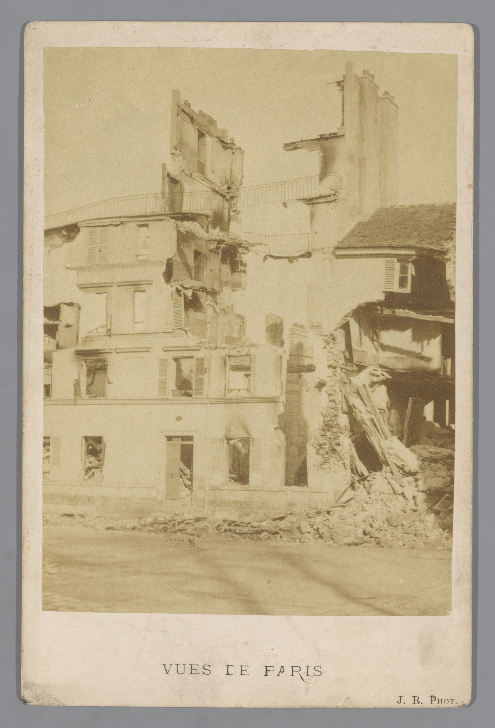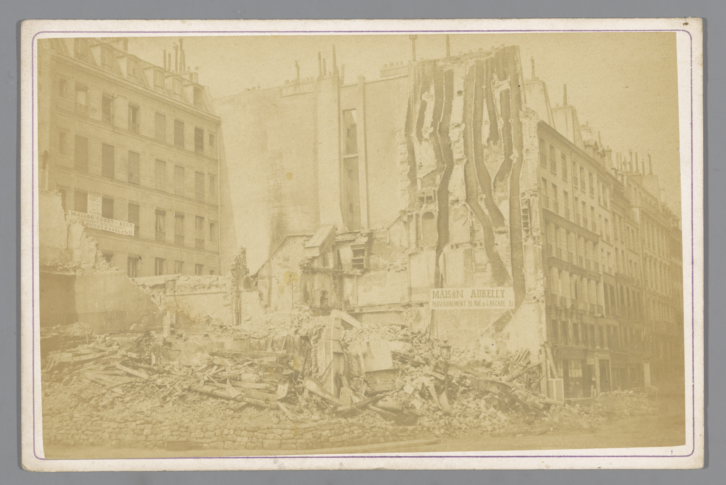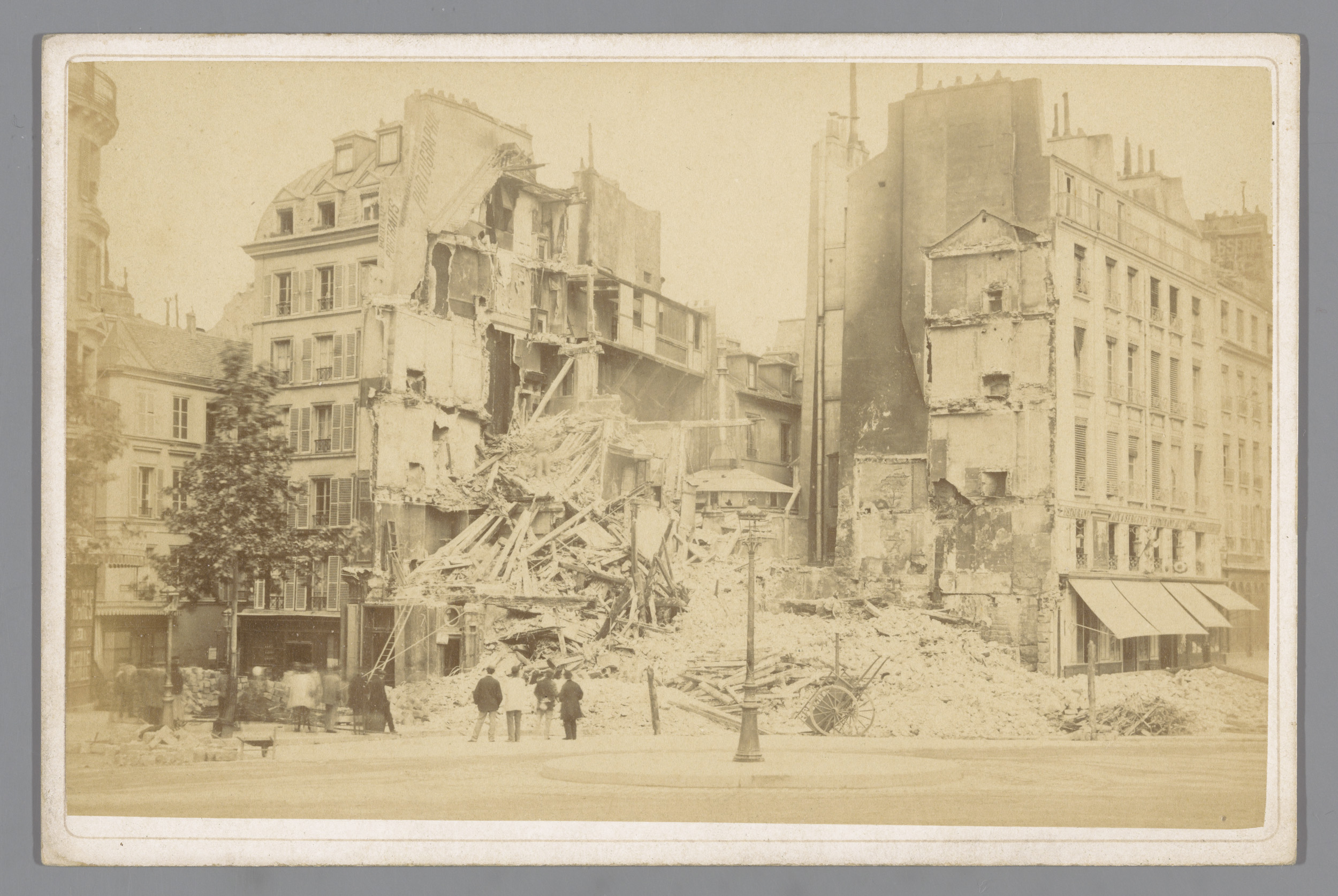 Gezicht op de Rue de Bac in Parijs na de verwoesting...