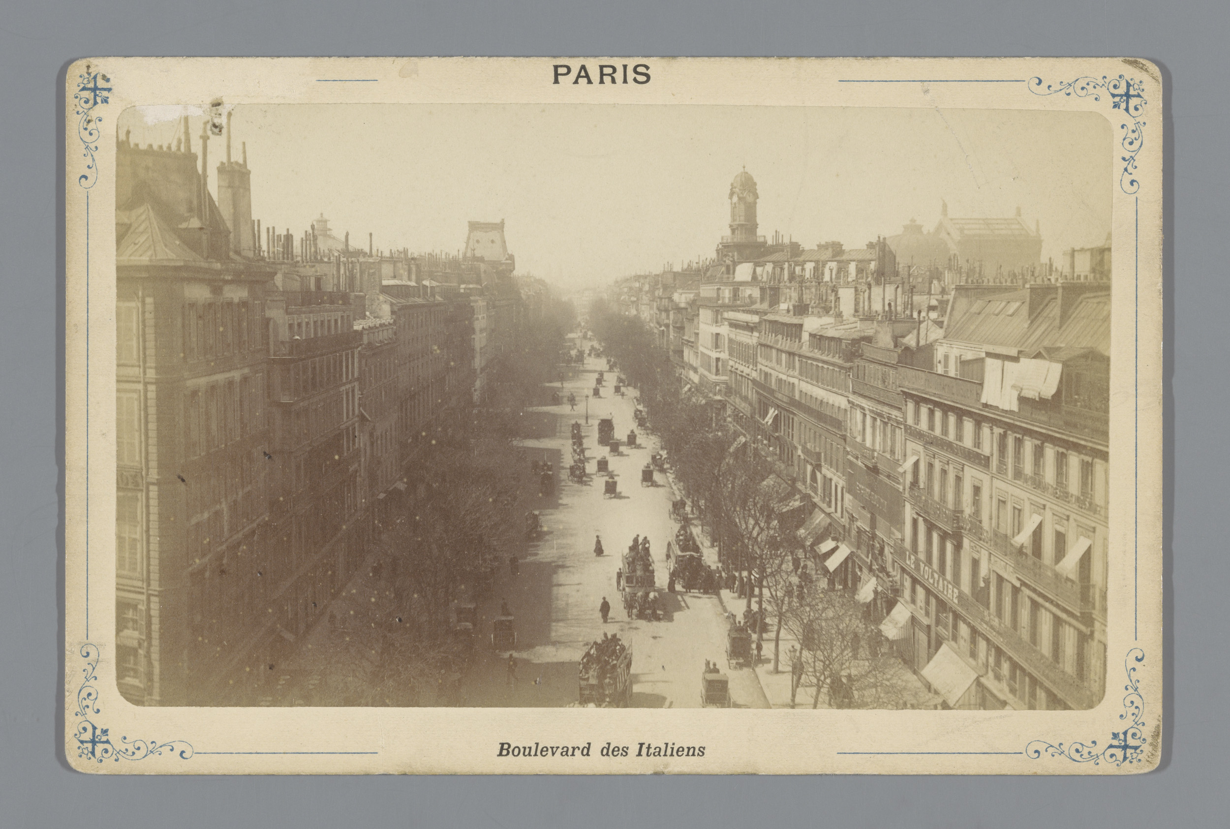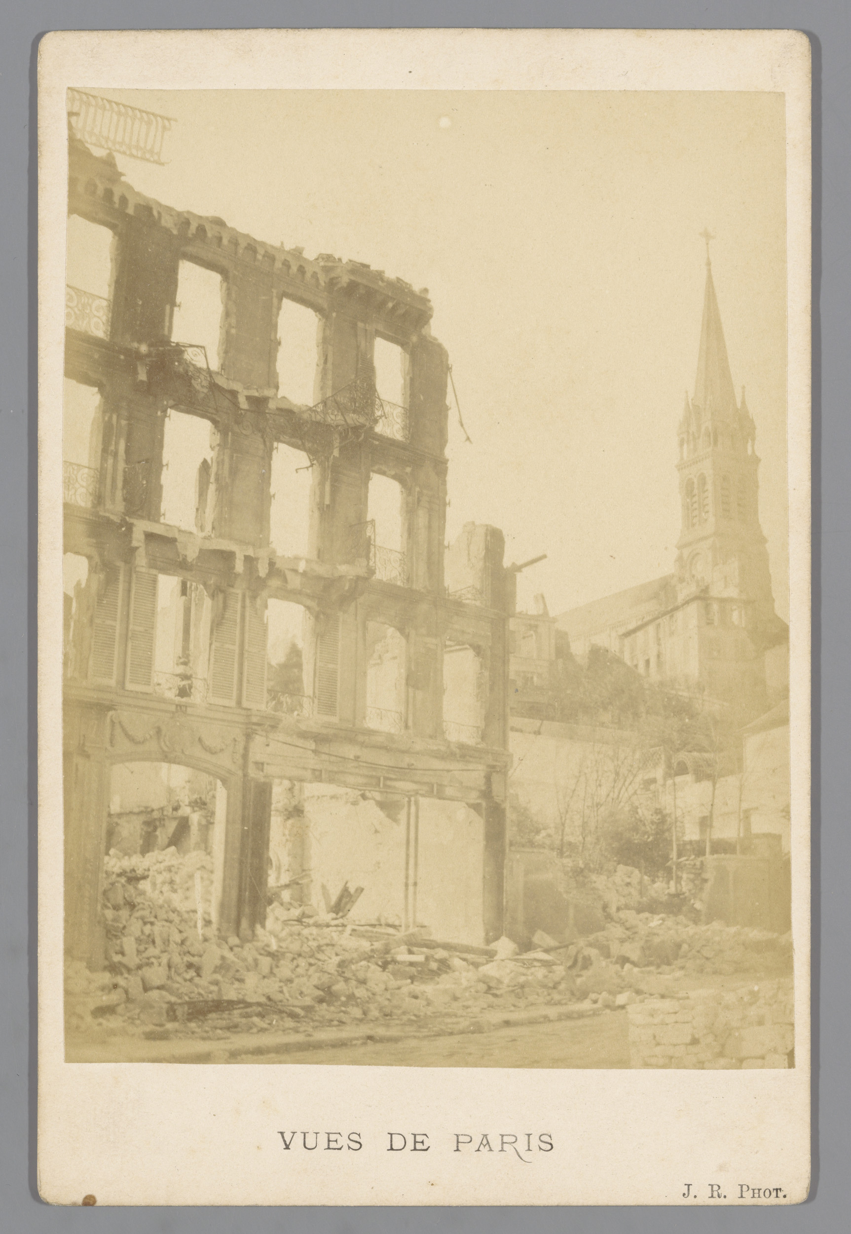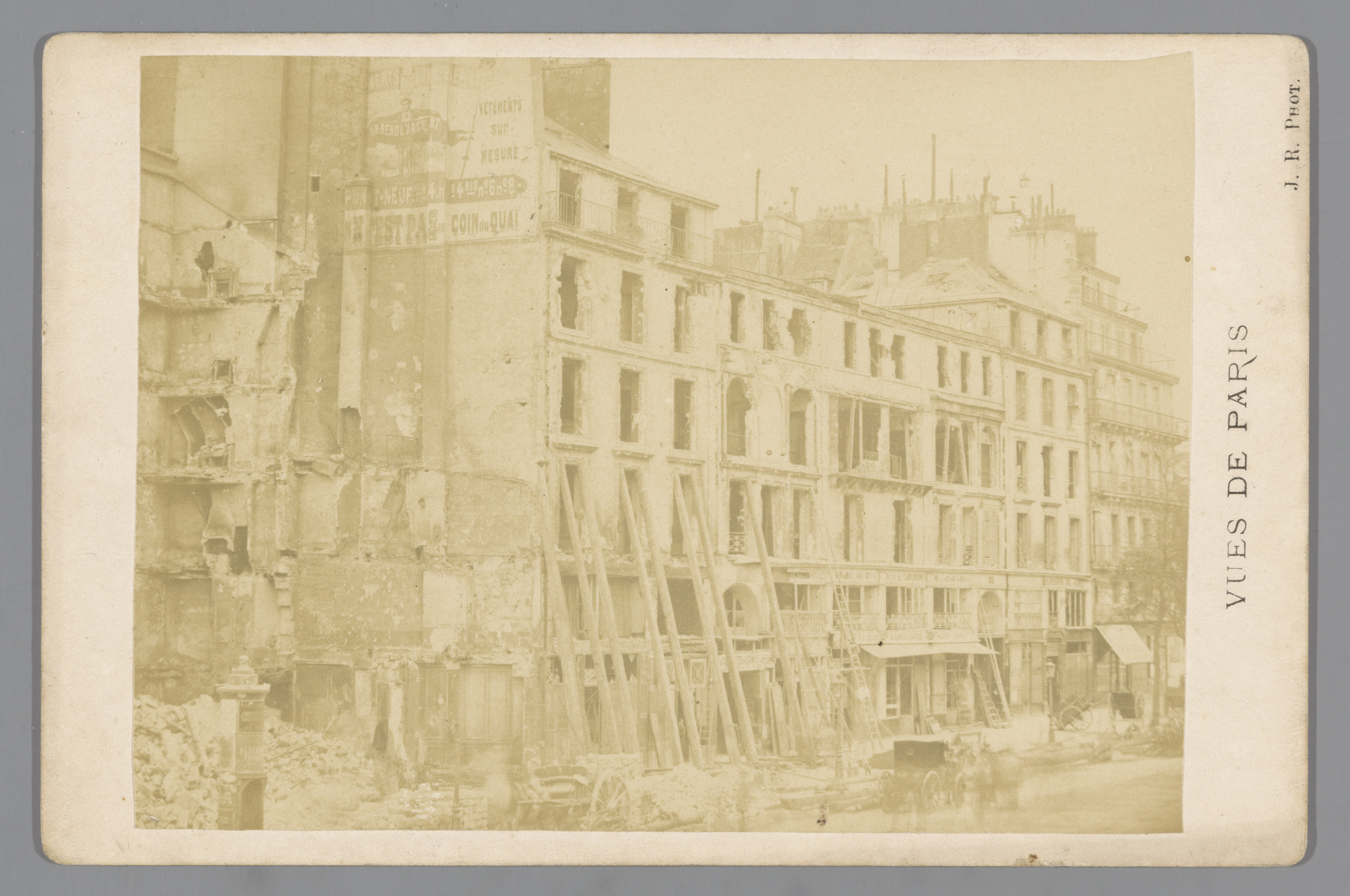 Gezicht op de Rue de Bac in Parijs na de verwoesting...