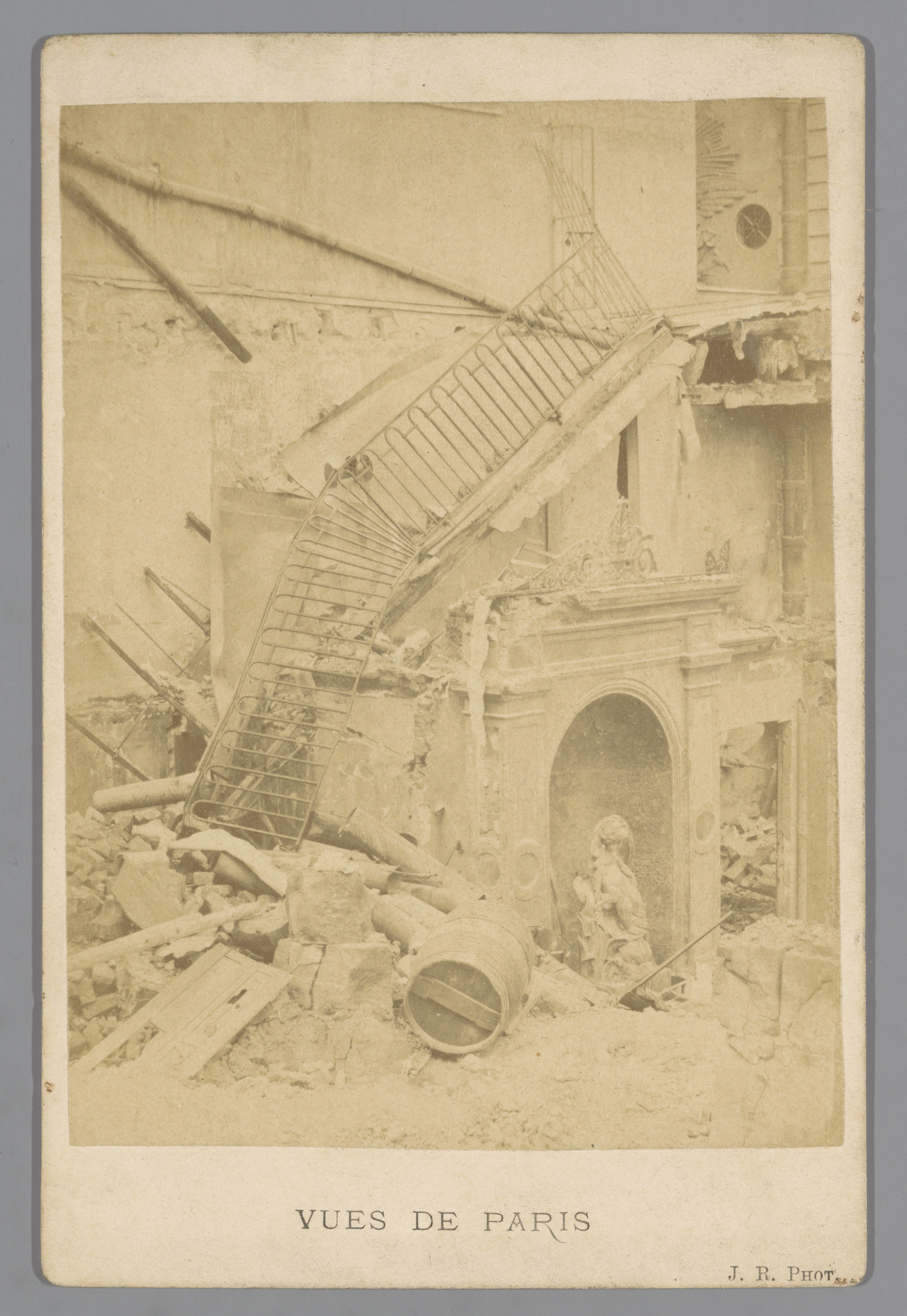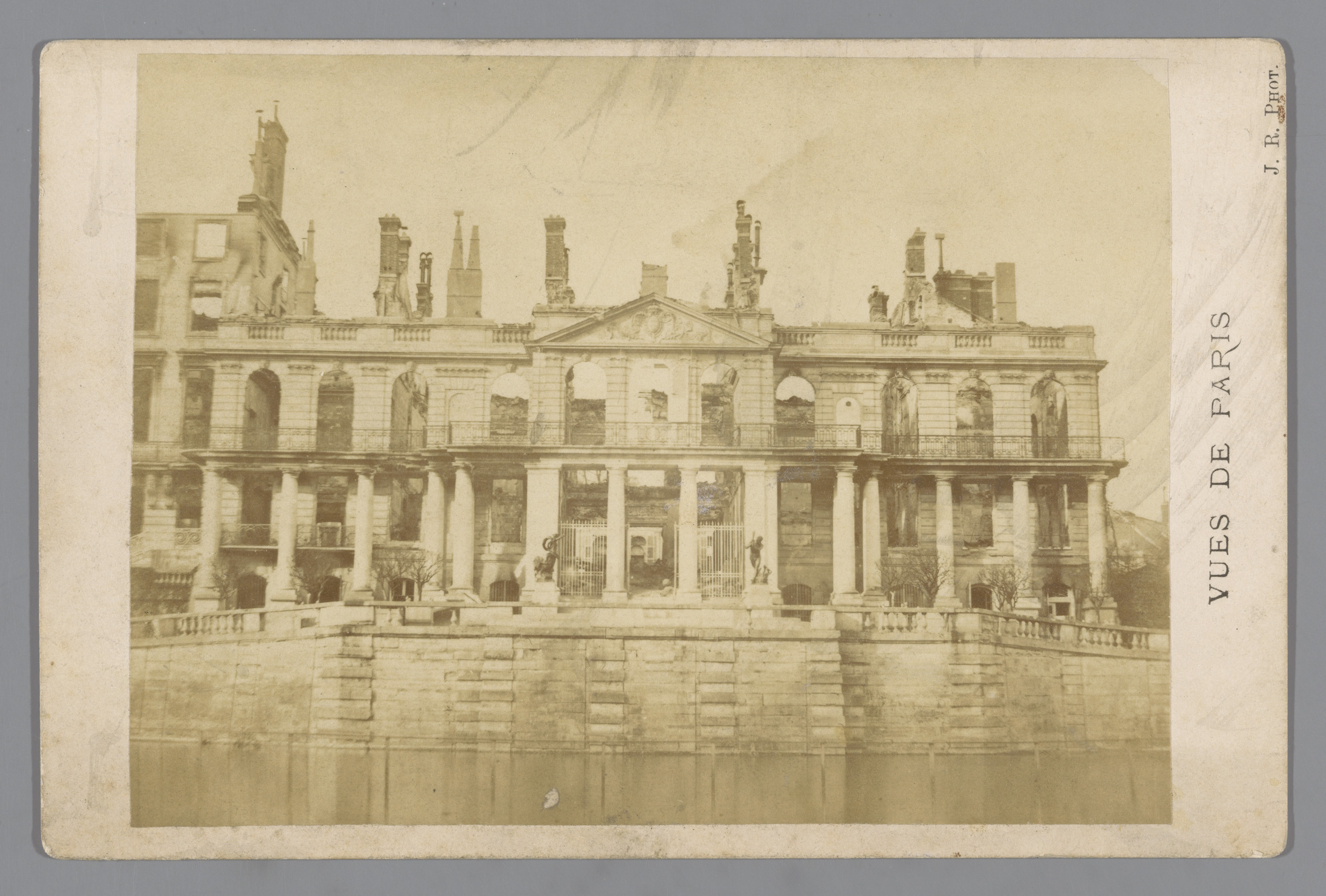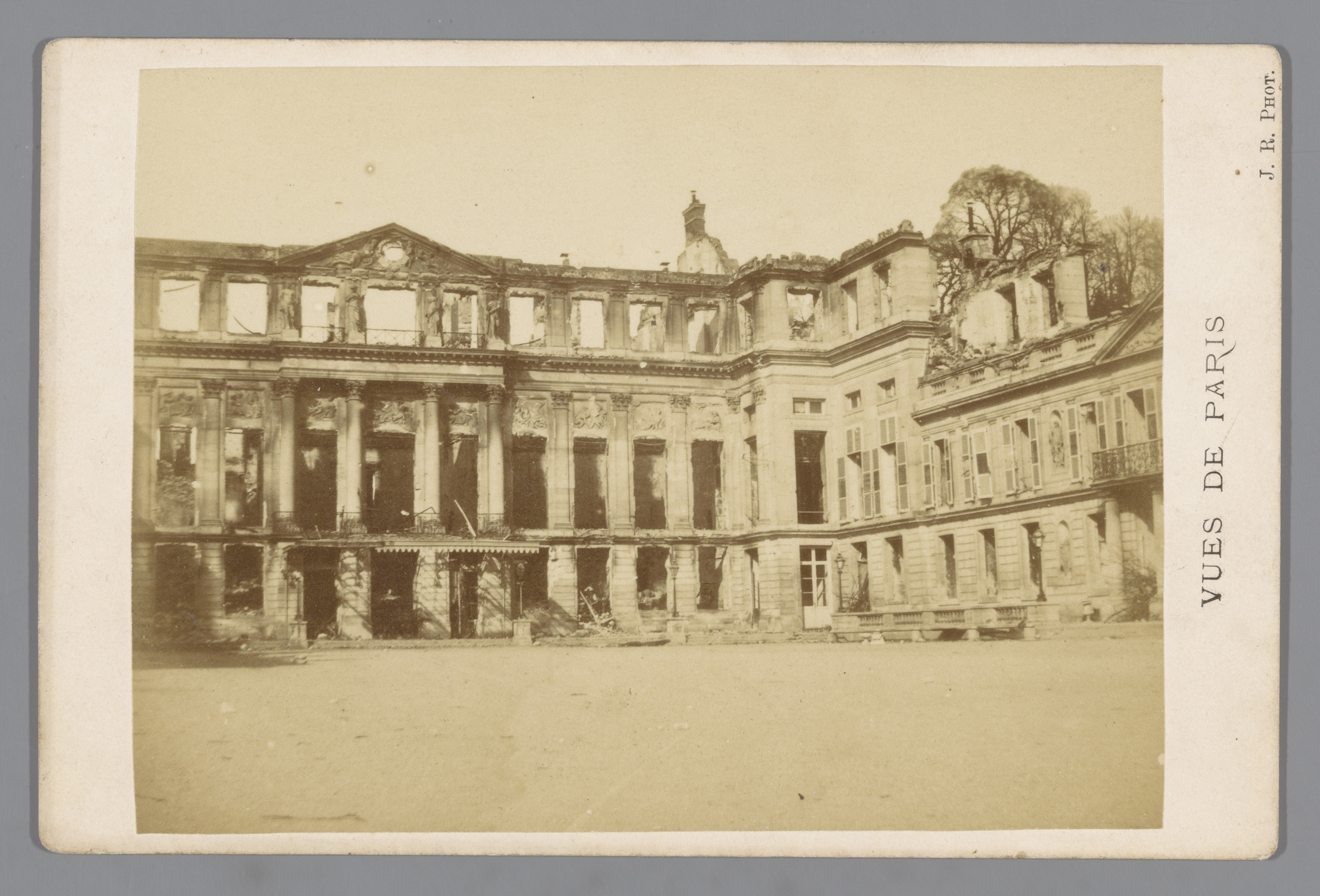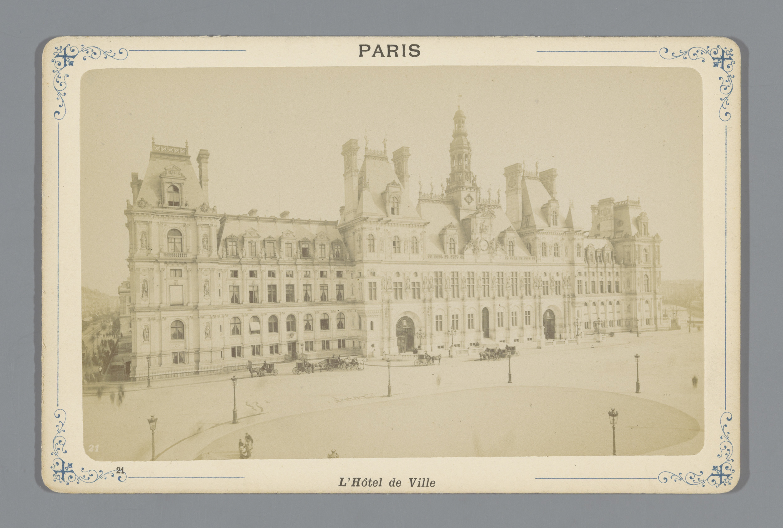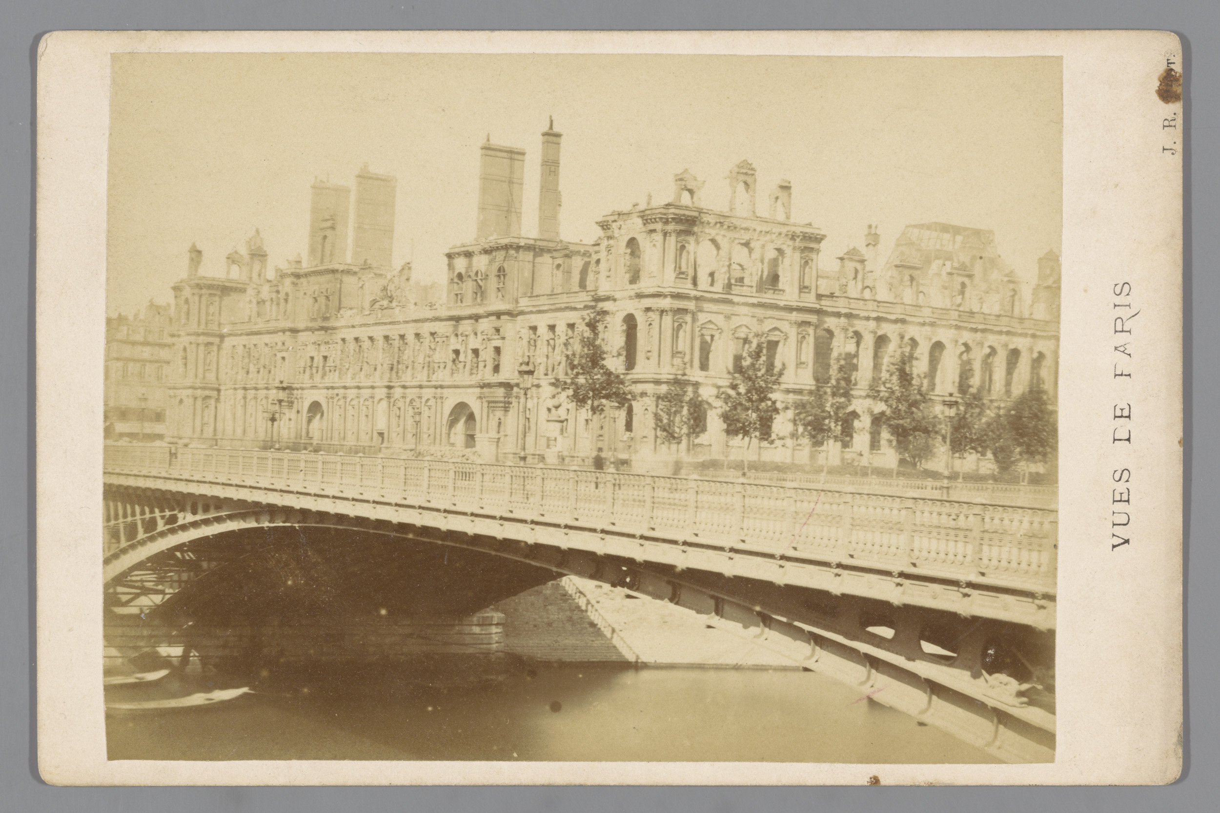 Gezicht op het stadhuis in Parijs na de brand door d...