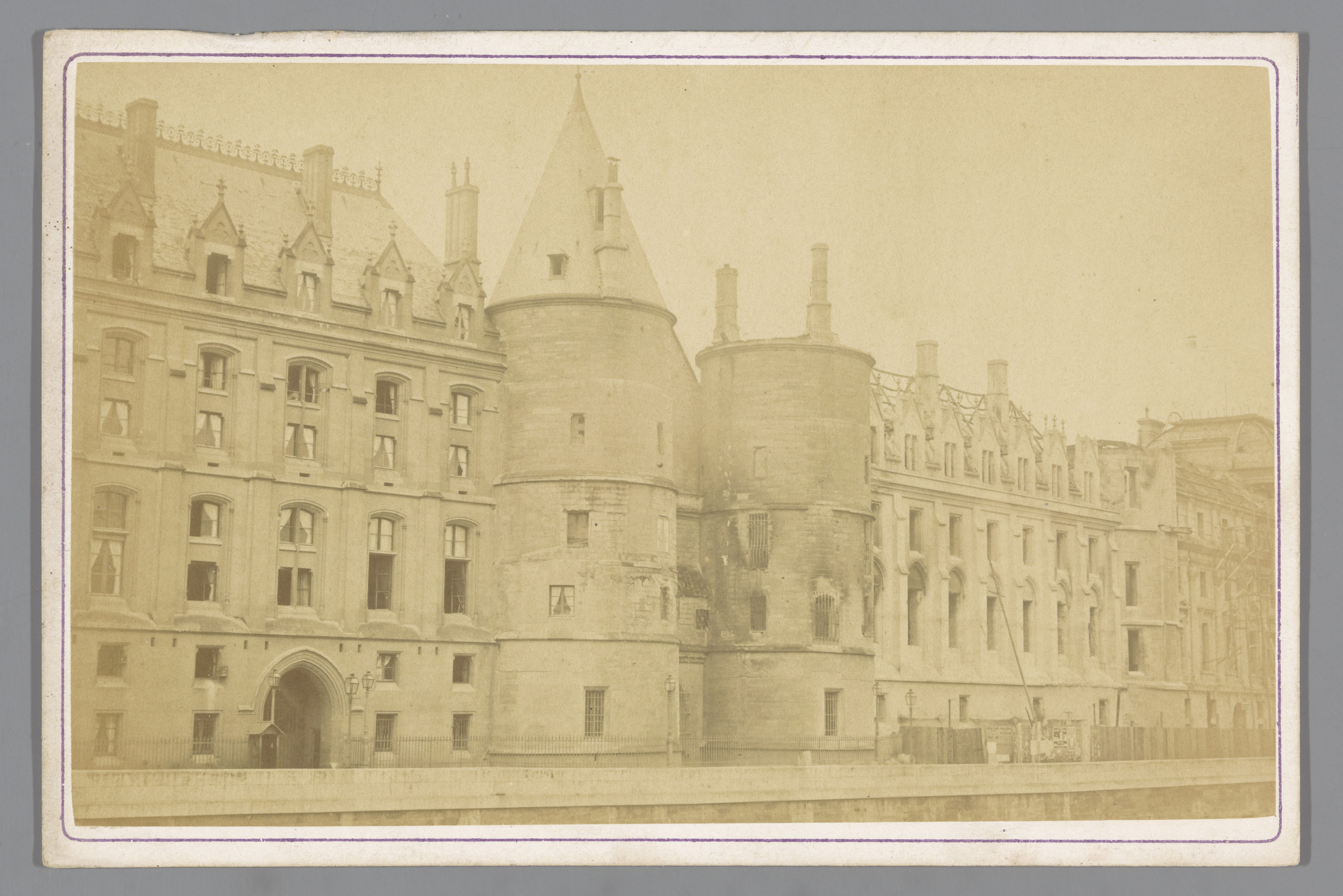 Gezicht op het Paleis van Justitie in Parijs na de b...