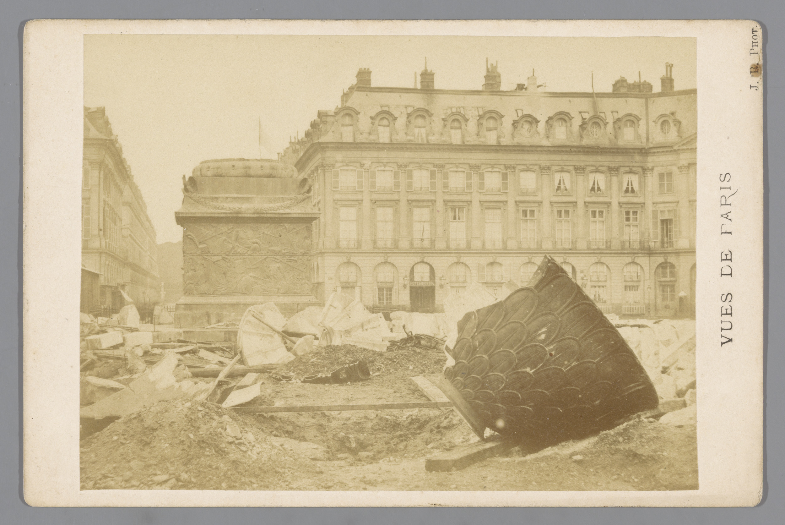Gezicht op Place Vendôme in Parijs met de resten van...