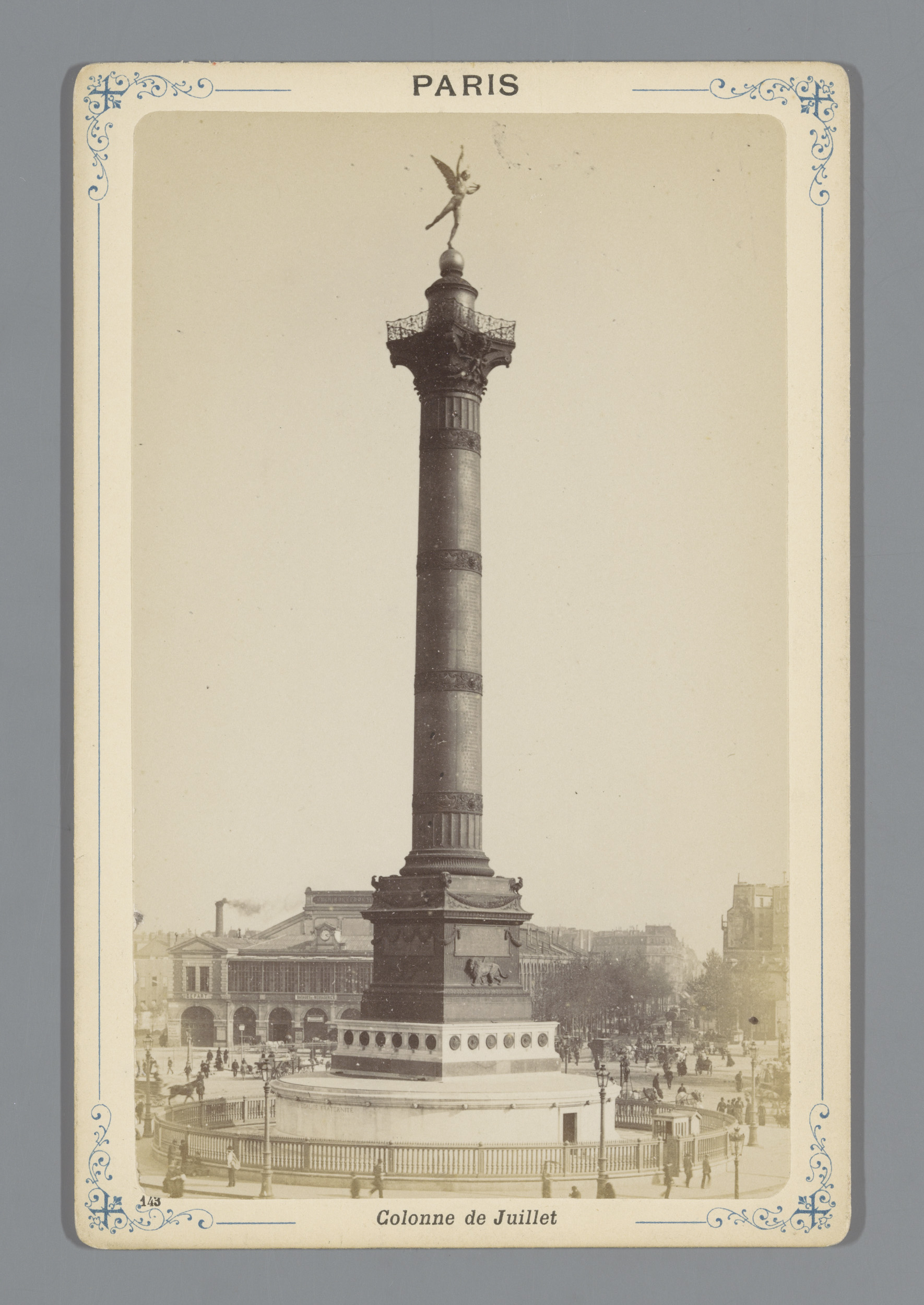 Gezicht op Place de la Bastille in Parijs na de bran...