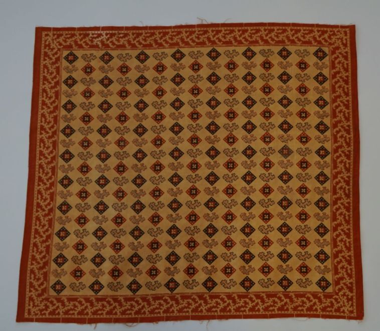 Katoenen rok, bedrukt in rood, zwart, lichtbruin en ...