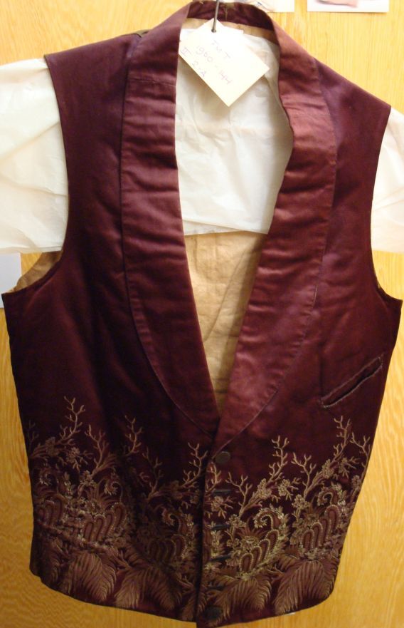 Herenvest van donker wijnrode zijde met ondereind pa...