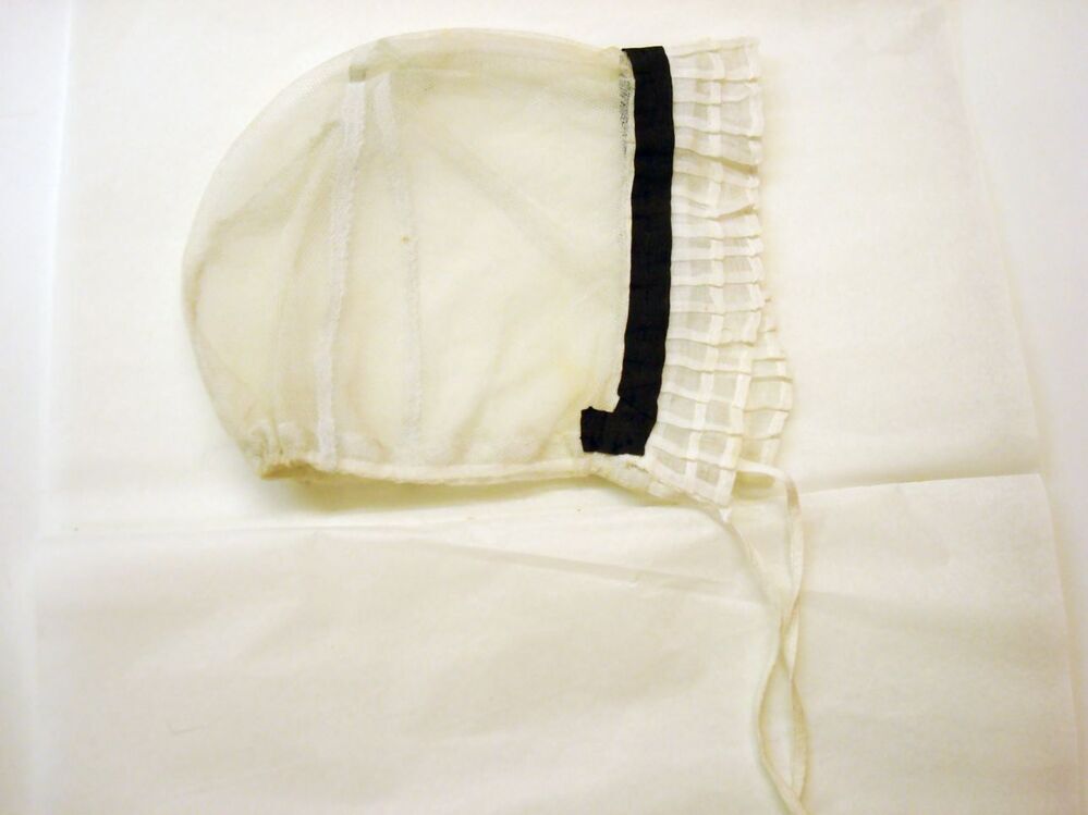 Zwarte ondermuts van katoen, hoort bij smal oorijzer