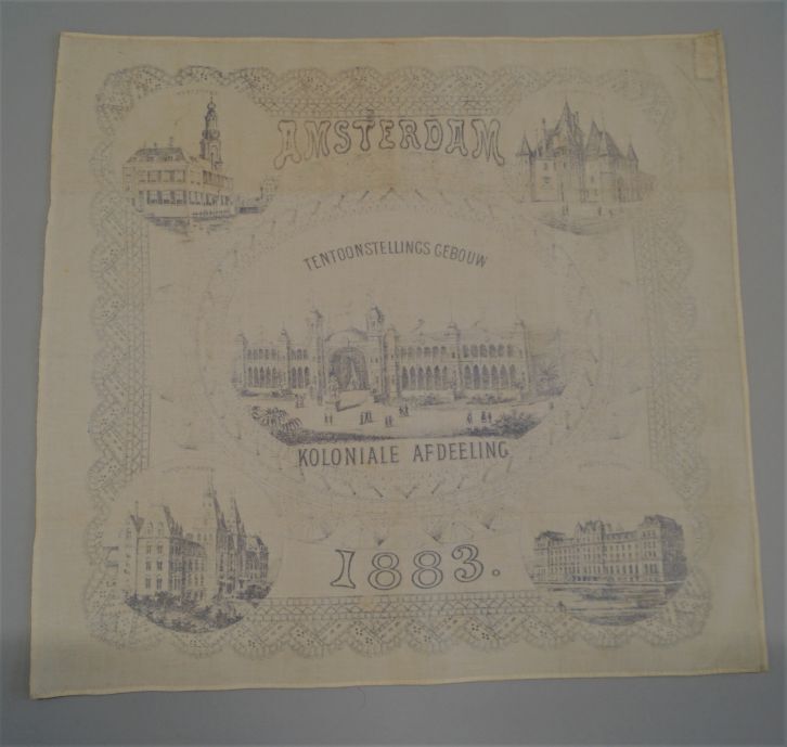 Bedrukte katoenen gedenkdoek met AMSTERDAM 1883, ten...