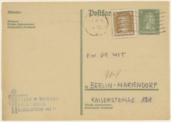 Uitnodiging voor de tentoonstelling van Seiwert in g...
