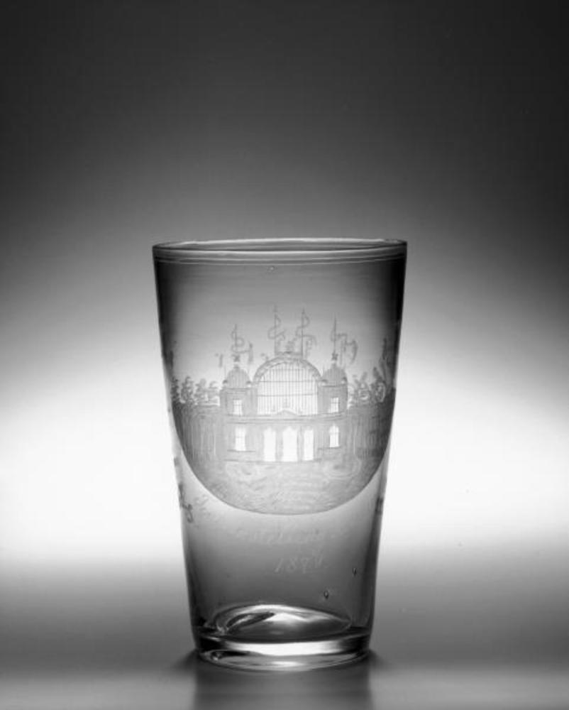 Souvenirglas met tekst ‘Tentoonstelling Arnhem 1879’