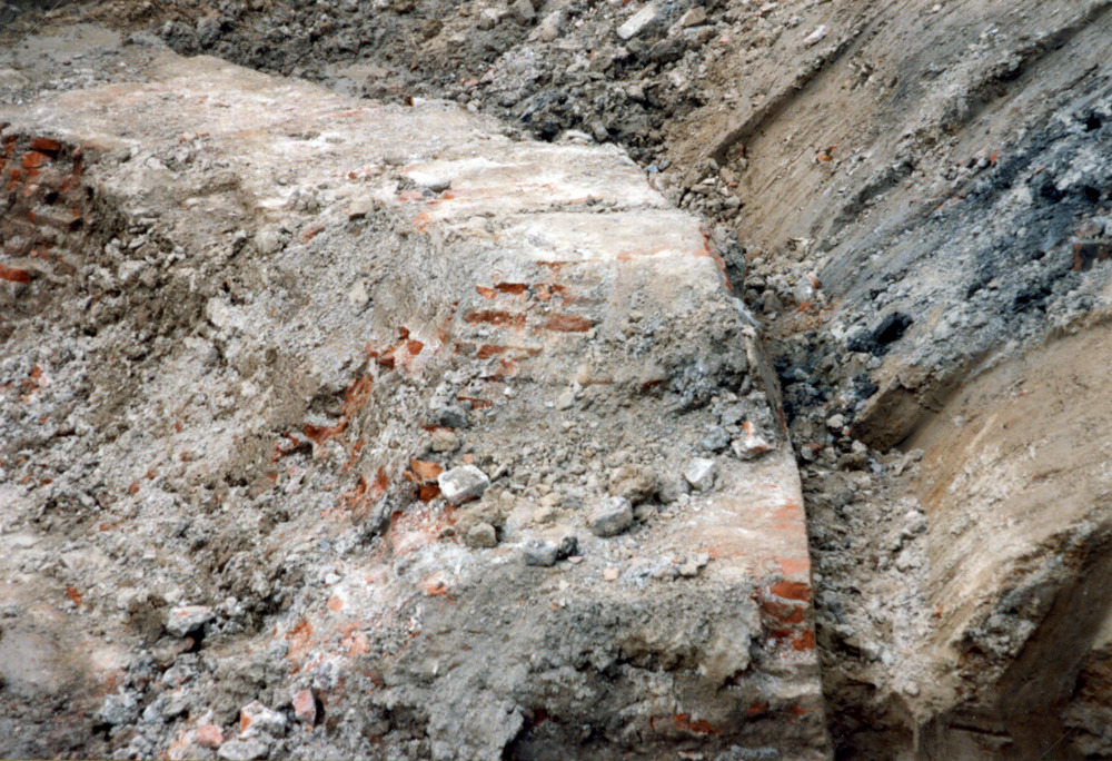 Kleurenfoto van de fundamenten van de toren van het ...