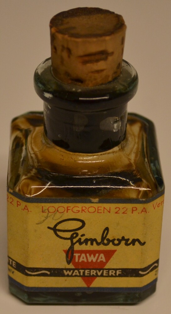 Flesje van glas met etiket van papier en afsluitende...