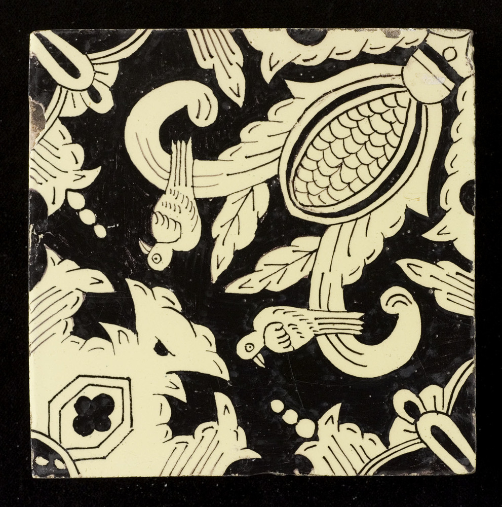 Tegel van keramiek met tinglazuur, voorstellende: or...