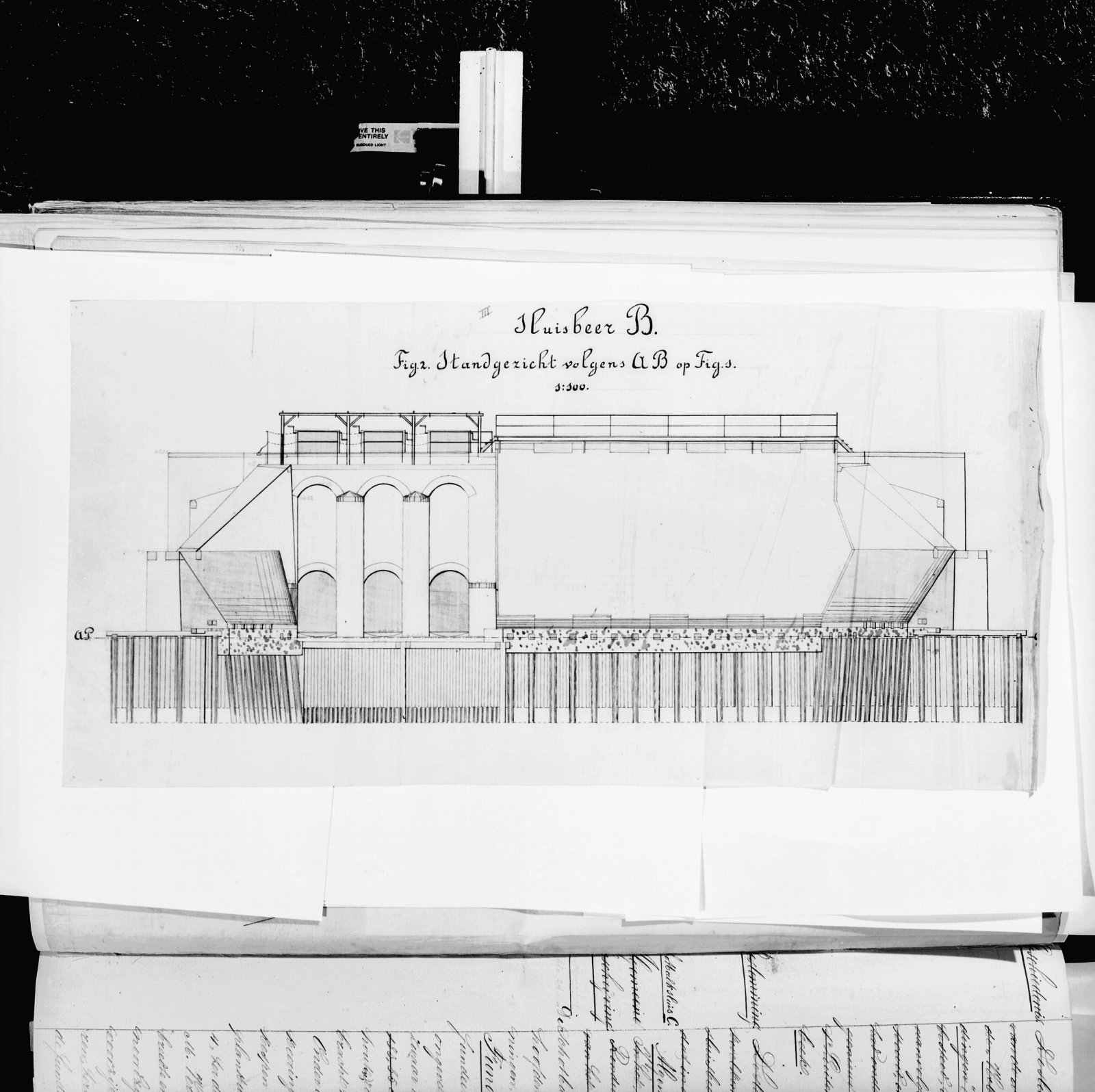 Tekening met doorsnede van sluisbeer B - tekening aa...