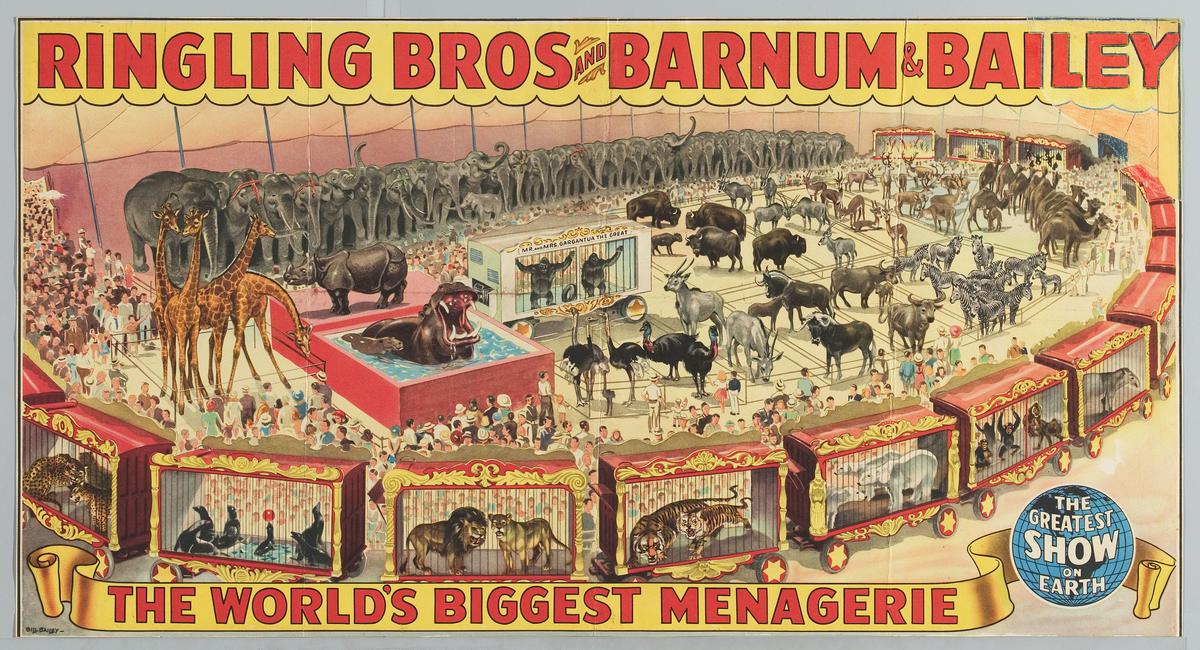Publiek bekijkt de dieren van het circus Ringling Ba...