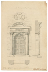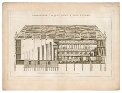 Ontwerptekening dwarsdoorsnede en zijgevel Schouwbur...