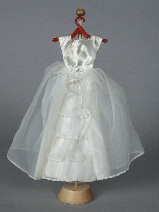 Poppenkleding, bruidsjurk van wit satijn en chiffon,...