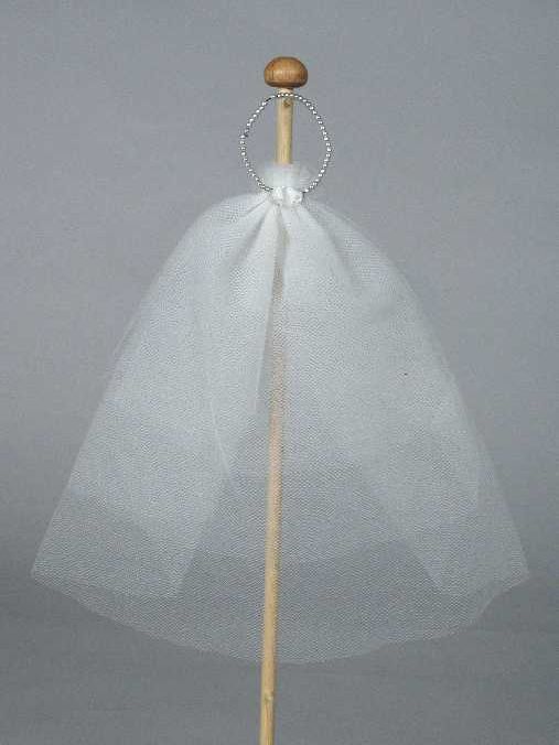 Poppenkleding, parelhoofdband met sluier van tule, "...