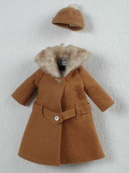 Poppenkleding, gerende winterjas met muts, roodbruin...