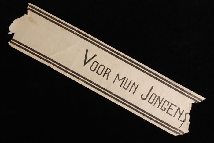 Deel papieren graflint met "Voor mijn jongens", gebr...