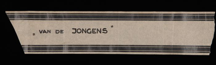 Deel papieren graflint met "VAN DE JONGENS", gebruik...