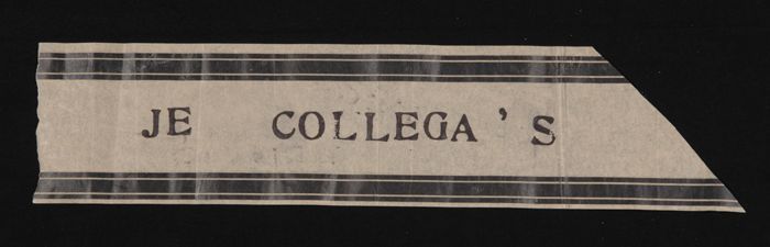 Deel papieren graflint met "JE COLLEGA´S", gebruikt ...