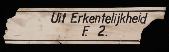 Deel papieren graflint met "Uit Erkentelijkheid / F....