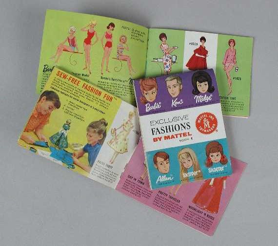Drie delen van reclameboekjes van Barbie met modepla...